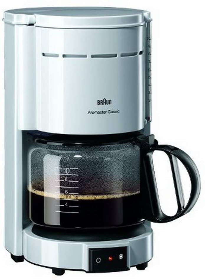Braun KF 47/1 Aromaster Classic BRAUN- Weiß- Leistung: 1.000 Watt- Tassenanzahl: 10- OptiBrew System- Tropf-Stopp beim Herausnehmen der Kanne- Leichtes Ausgießen- Schwenkbarer Filterkorb mit Überlaufschutz- Herausnehmbarer Filterkorb- Große, gut sichtbare Kontrolllampe- Wasserstandsanzeige- Kanne, Deckel und Filterkorb spülmaschinen- geeignet- Leichte Reinigung- Abschaltautomatik nach 40 Minuten- Integrierte Kabelaufbewahrung