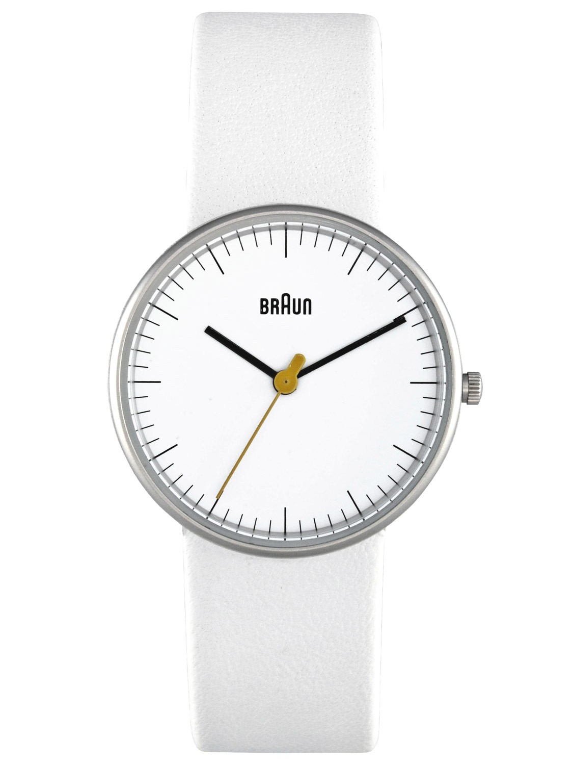 - Edelstahlgehäuse matt - Weißes Ziffernblatt - 3-Zeiger-Quarzwerk - Mineralglas kratzfest - Wasserdicht bis 50 m - Lederarmband - Besonderheit: Schrauben auf Gehäuserückseite - Gehäuse: Durchmesser 31 mm x 8 mm
