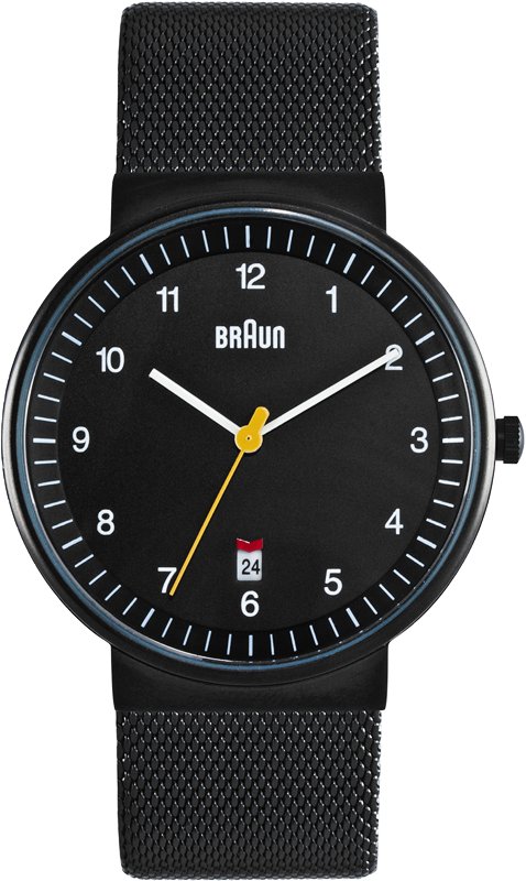 - Edelstahlgehäuse matt schwarz - Schwarzes Ziffernblatt - 3-Zeiger-Quarzwerk - Mineralglas kratzfest - Datum-Anzeige - Wasserdicht bis 50 m - Maschenarmband - Besonderheit: Schrauben auf Gehäuserückseite - Gehäuse: Durchmesser 40 mm x 8 mm
