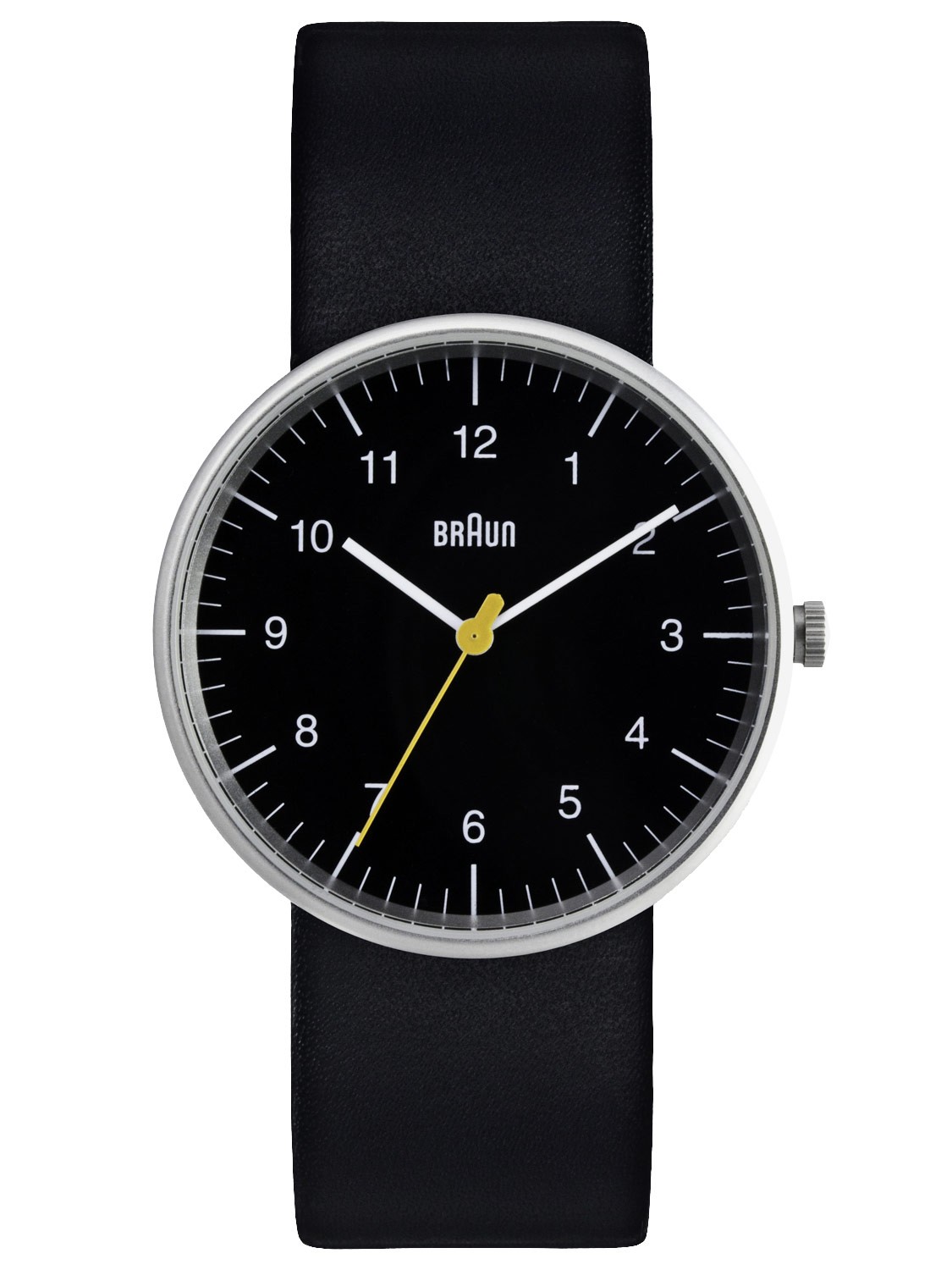 - Edelstahlgehäuse matt - Schwarzes Ziffernblatt - 3-Zeiger-Quarzwerk - Mineralglas kratzfest - Wasserdicht bis 50 m - Lederarmband - Gehäuse: Durchmesser 38,5 mm x 8,5 mm