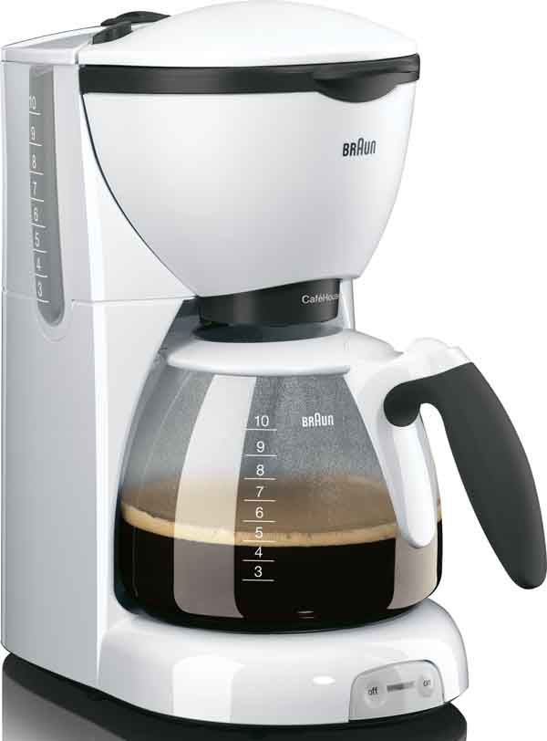 Braun KF 520/1 CaféHouse PurAroma BRAUN- Weiß- Braun PureAqua Wasserfiltersystem- Leistung: 1.100 Watt- Tassenanzahl: 10- OptiBrew System- Exklusive automatische Filteröffnung- Tropf-Stopp beim Herausnehmen der Kanne- Einzigartiger offener Anti-Rutsch Griff- Leichtes Ausgießen- Schwenkbarer Filterkorb mit Überlaufschutz- Herausnehmbarer Filterkorb- Große, gut sichtbare Kontrolllampe- Wasserstandsanzeige- Kanne, Deckel und Filterkorb spülmaschinen- geeignet- Leichte Reinigung- Integrierte Kabelaufbewahrung- Abschaltautomatik nach 40 Minuten